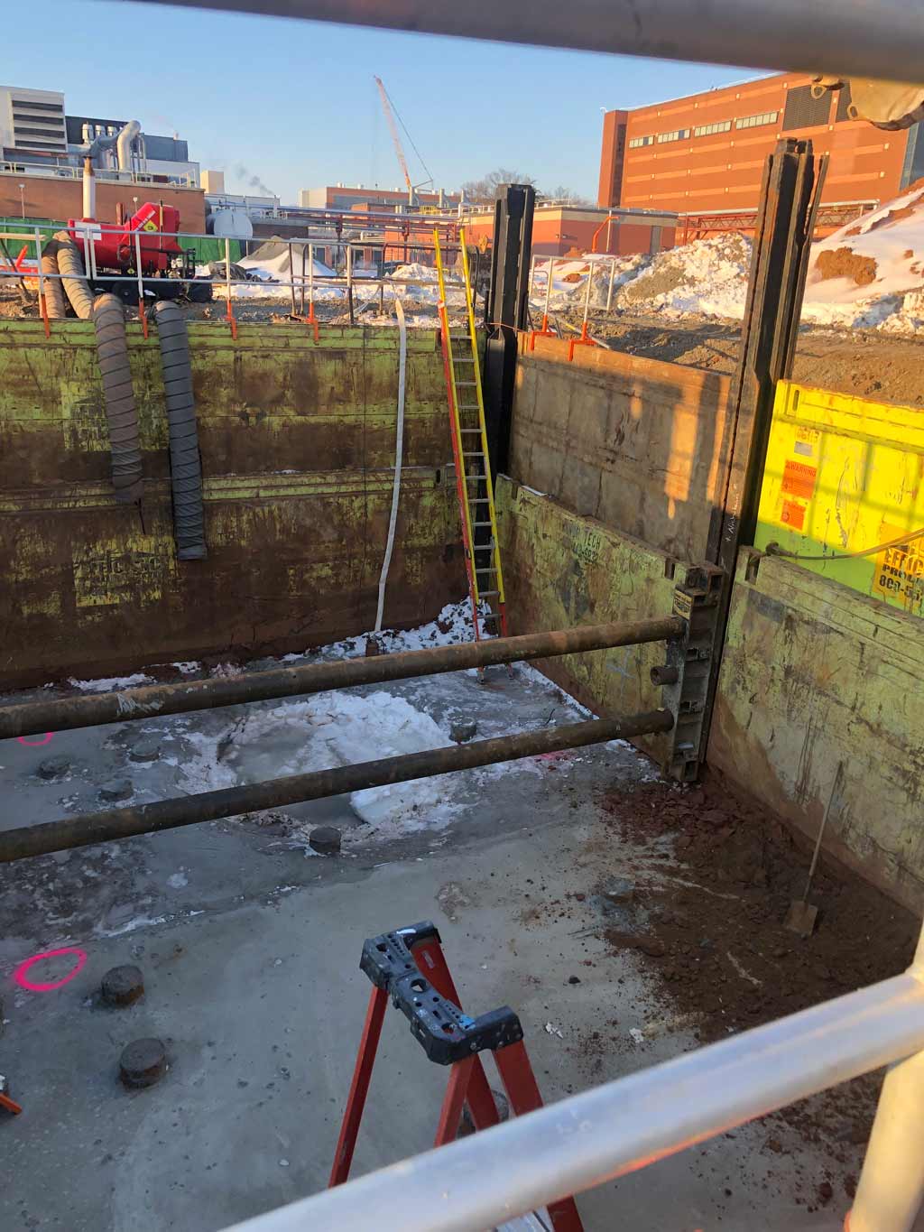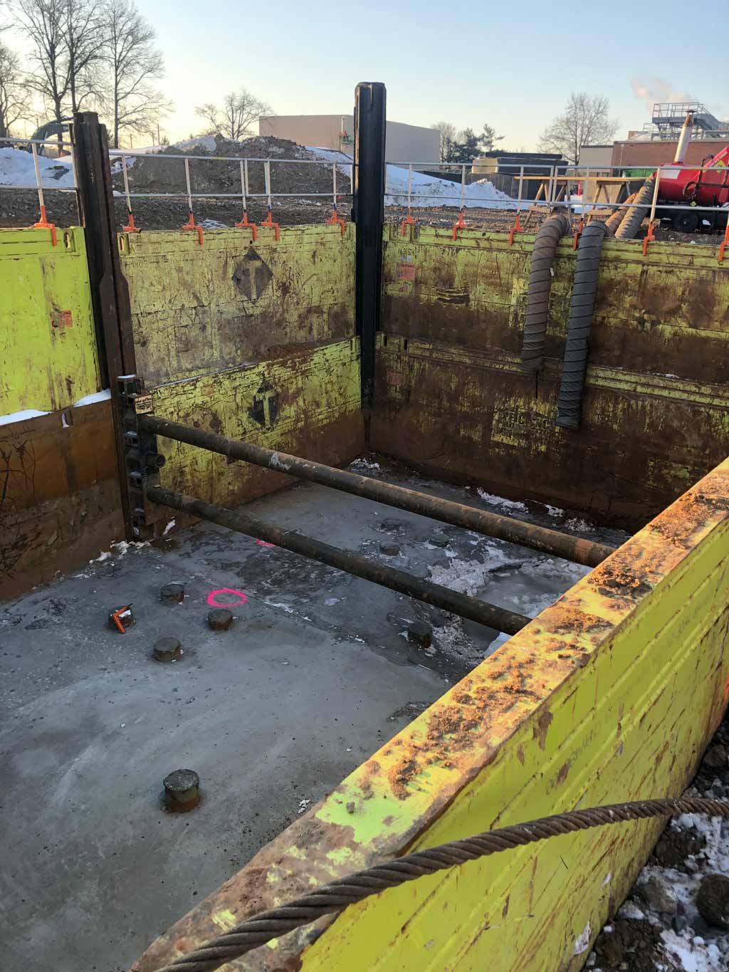 A 26 x 36 x 16 deep ClearSpan Slide Rail System was installed - formwork for concrete foundations at Merk. Aluminum guard fence added for safety.Fairfax, VA