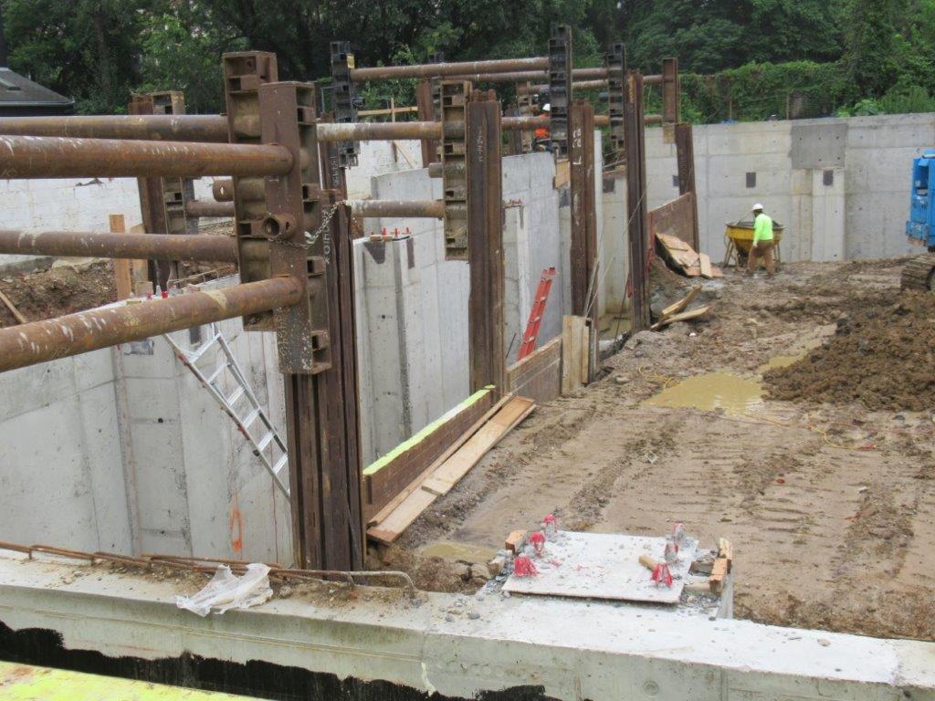 8x16x12 deep Slide Rail Multiple Bay. This is the installation of the first bay, used to install a building foundation and basement wall. Another bay will be added, which will then leap frog.Coatesville, PA