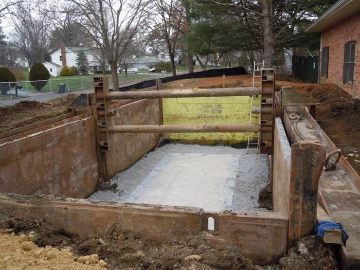 10x45x12 Slide Rail for electricity and communication vaults on the second of four apartment buildings being built.Woodlyn, PA