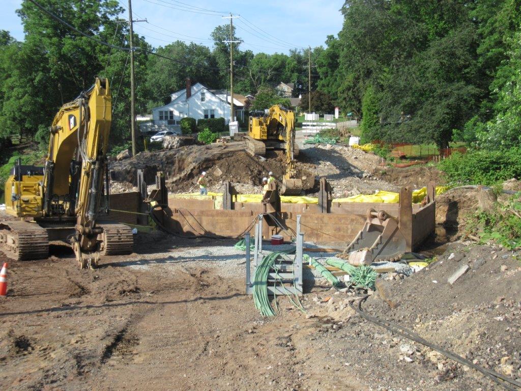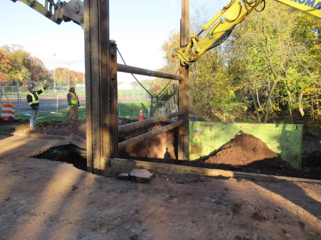 10' wide Slide Rail Multi-bay being used to install a new head wall at the Navy Yard.Collegeville, PA