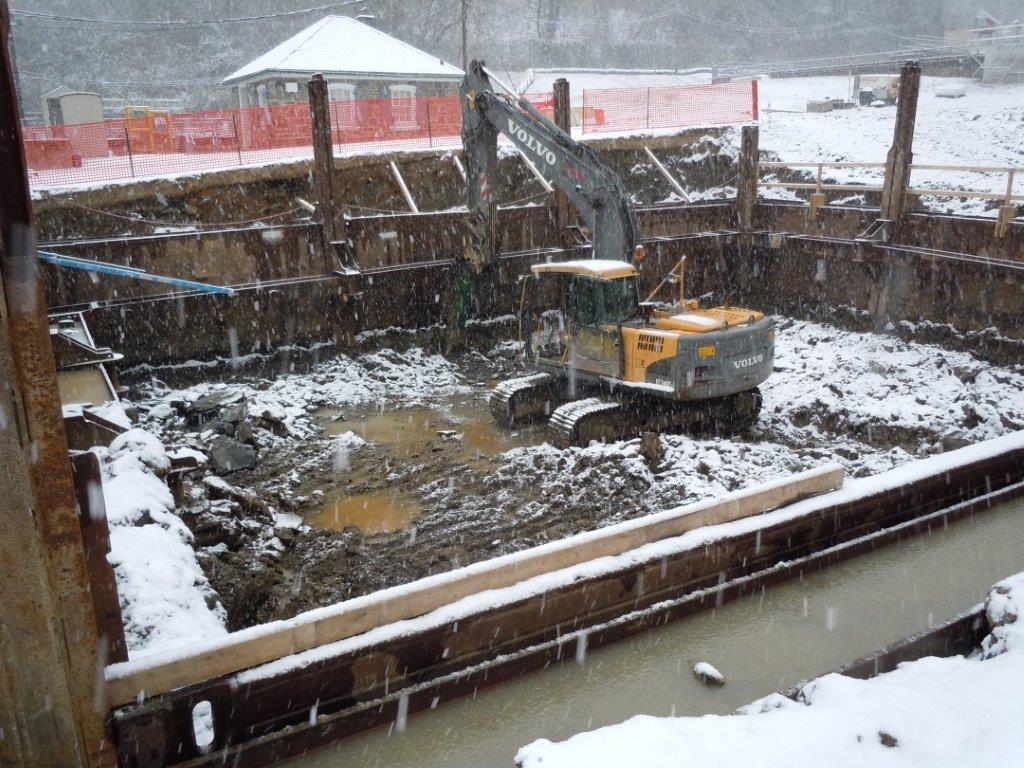 Installation of a new tank at a waste water treatment plant. 48' x 56' x 8'-16' deep.