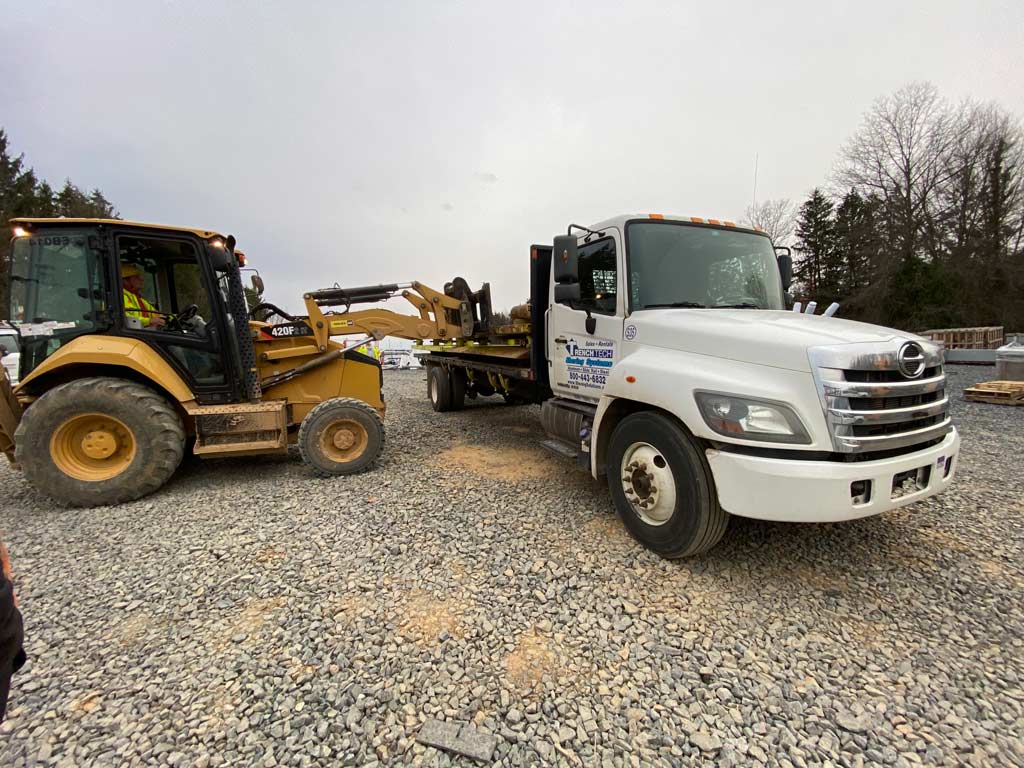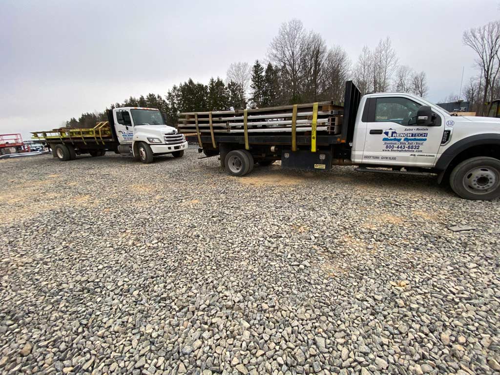 A fleet of trucks, owned by TrenchTech, are always available to deliver equipment during and after hours. In this case, TrenchTech made a delivery of both steel and aluminum trench boxes to the jobsite at 6pm on a Friday for weekend night work.